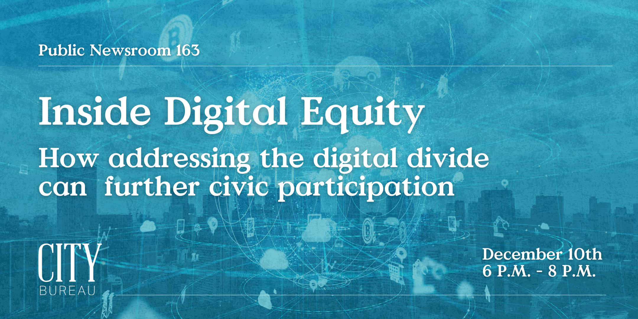 City Bureau’s work is about addressing the barriers to a more just and equitable information ecosystem. When people can’t access a computer, don’t feel comfortable navigating the internet, or lack broadband access—that’s a major roadblock to being informed in an increasingly online world. We can’t have information equity without digital equity.